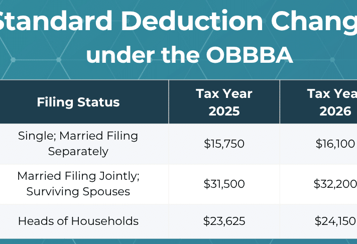 (Additionally, for tax year 2025, the OBBB raises the standard deduction amount to $31,500 for married couples filing jointly. For single taxpayers and married individuals filing separately, the standard deduction for 2025 is $15,750, and for heads of households, the standard deduction is $23,625.)