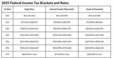 The lowest rate is 10% for incomes of single individuals with incomes of $12,400 or less ($24,800 for married couples filing jointly).